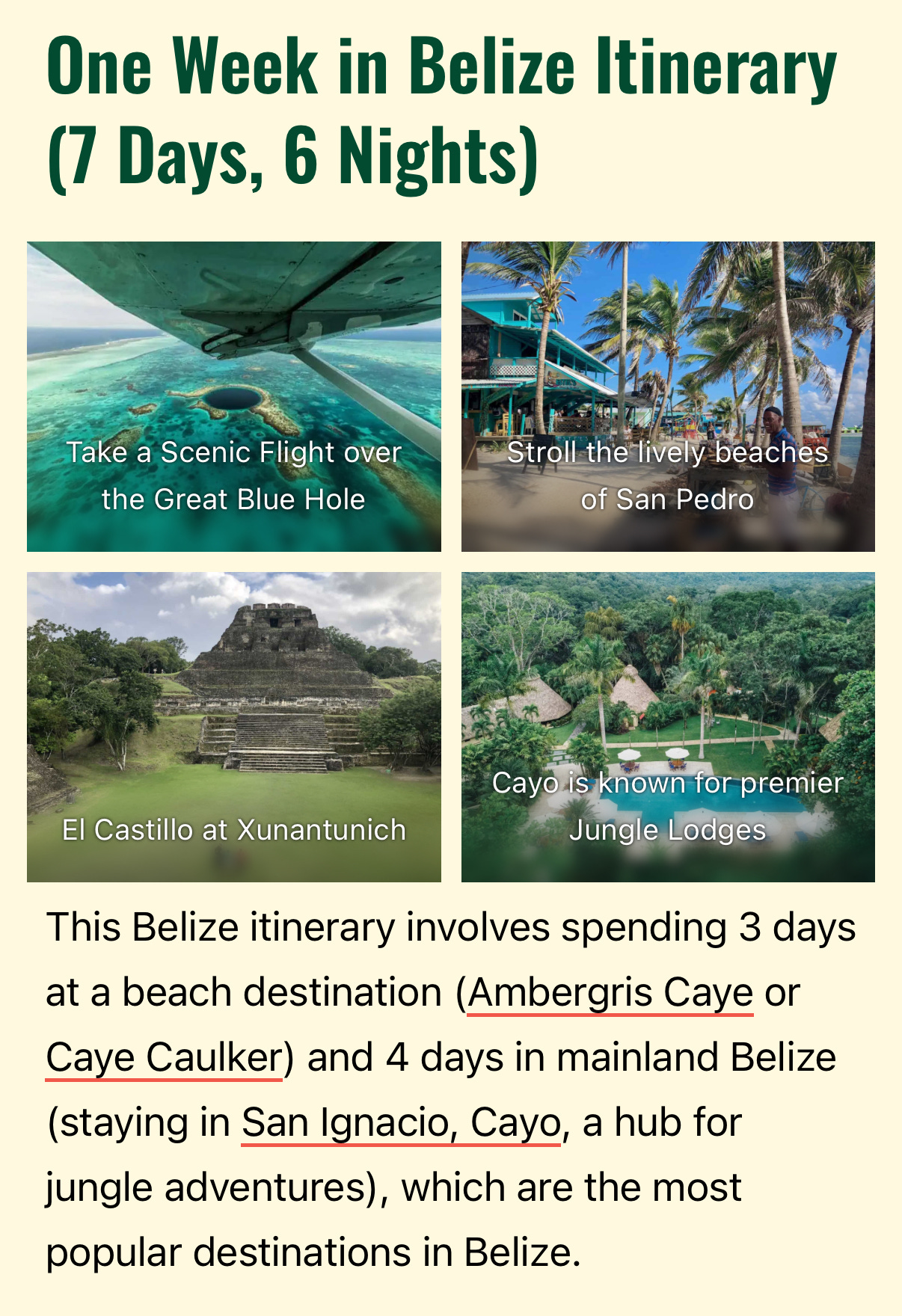 Link San Ignacio, Hopkins, Dangriga, Punta Gorda, Orange Walk, Corozal, and Sarteneja into clear, accessible multi-stop itineraries that work for 10–14 day trips. These routes should be packaged, priced, and promoted as cohesive experiences. Predictable shuttle and bus schedules, mapped itineraries, and sample trip plans will help visitors understand how to move from one region to the next.
